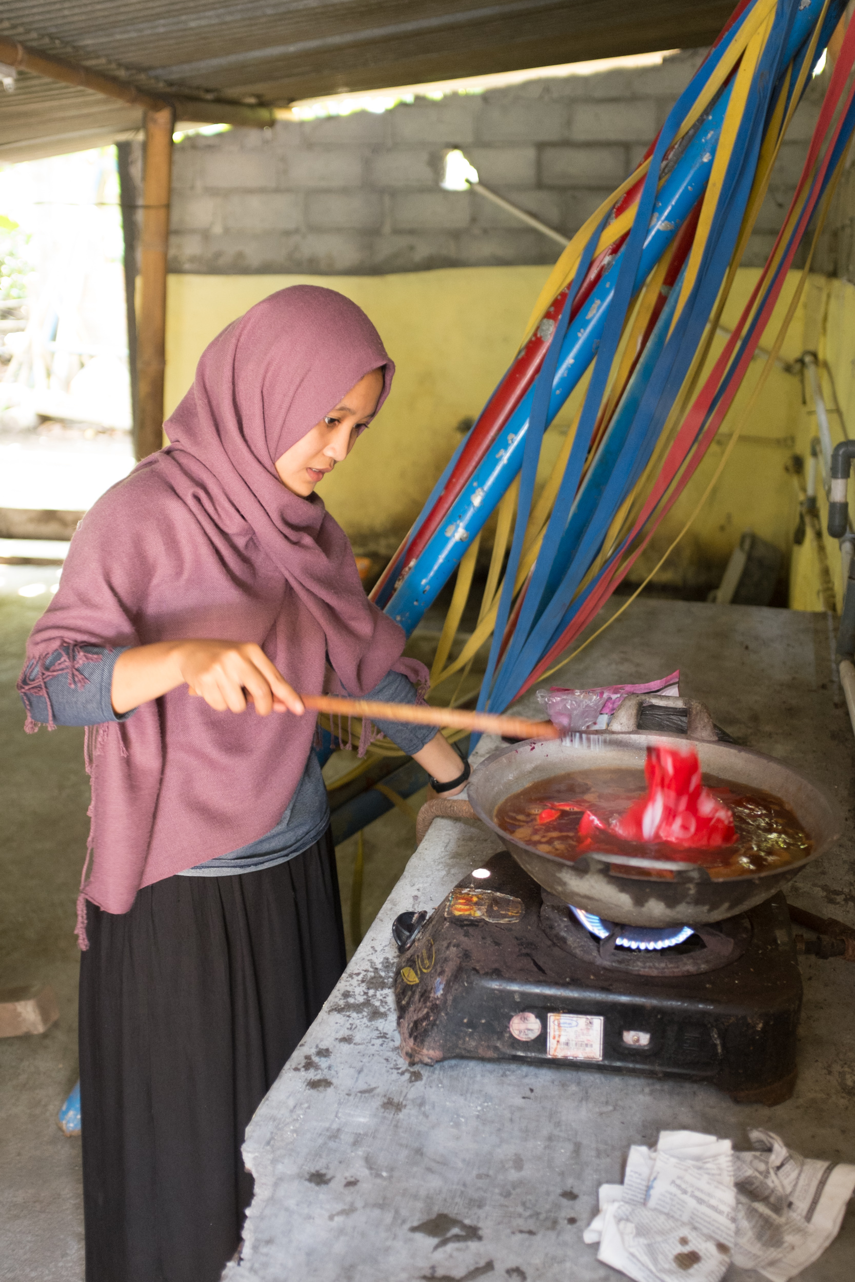 Das Wachs wird nach dem Färben ausgewaschen.