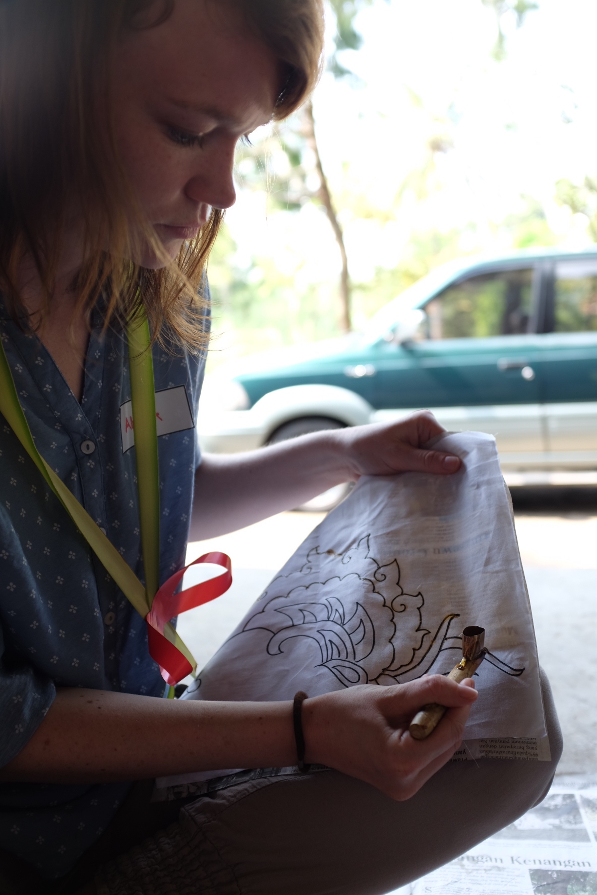 Der Stoff sollte schräg gehalten werden, um die Arbeit zu erleichtern und zu verbessern.